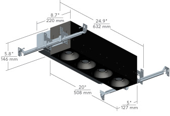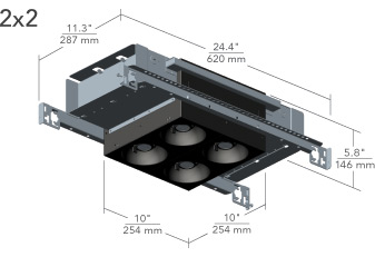 ELEMENT Multiples offers three interchangeable LED light modules: general illumination, wall wash, and adjustable spot. Light modules are sold separately to allow the ultimate in flexibility and customization options. The adjustable spot features a unique patent-pending LED dome assembly enabling remarkable tool-free adjustment and locking while maintaining full center beam candle power at all tilt & rotation angles. Although open, its thoughtful design boasts an uncommonly attractive, even sleek look below the ceiling. Available in 1x1, 1x2, 1x3, 1x4 and 2x2 configurations.