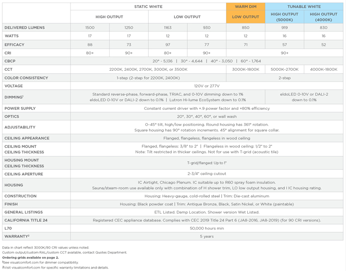 - 2” HIGH-OUTPUT, ADJUSTABLE 40°, TUNABLE WHITE 5000K-2700K, 90 CRI