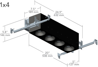 ELEMENT Multiples offers three interchangeable LED light modules: general illumination, wall wash, and adjustable spot. Light modules are sold separately to allow the ultimate in flexibility and customization options. The adjustable spot features a unique patent-pending LED dome assembly enabling remarkable tool-free adjustment and locking while maintaining full center beam candle power at all tilt & rotation angles. Although open, its thoughtful design boasts an uncommonly attractive, even sleek look below the ceiling. Available in 1x1, 1x2, 1x3, 1x4 and 2x2 configurations.