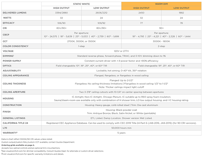 The 3" LED Dual Adjustable downlight provides high performance and beautiful architectural appearance when design requirements for task or accent lighting require two closely spaced downlights with ndependent aiming capability. Designed to utilize the same trim pieces as the rest of the ELEMENT 3" LED series (two per housing), the ELEMENT 3" LED Dual Adjustable can be used in conjunction with the entire 3" family and remain undetectable. Complete independent adjustability allows for lockable hot aiming with 0°- 35° tilt and 361° rotation of both light modules within a single housing.