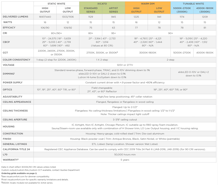 Housing size reduced 60% Patented High/Low Lamp Positioning 1-step static white, 2-step warm dim and tunable white Standard Triac/ELV dimming to less than 1% Trim Reflector Options Solite™ Soft Focus Lens Option