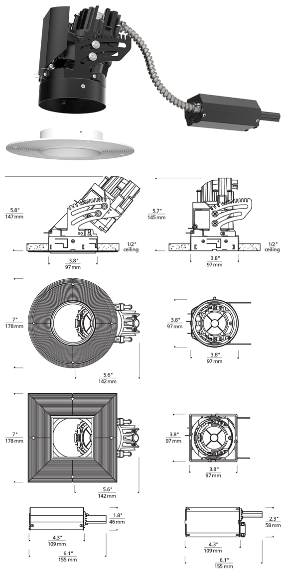 The ELEMENT 3" LED Flanged or Flangeless Adjustable Remodel is suited for below the ceiling installation