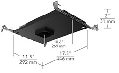 Installing ELEMENT is easy. Product includes butterfly brackets and adjustable steel hangar bars.Flanged trims have minimal thickness.Flangless trims include a crack-resistant plaster plate with no-fill collar that installs after the ceiling to prevent plaster cracking by unifying the plate, ceiling, and housing.Integral gunsights for positioning with laser levels ensure consistent alignment during installation.