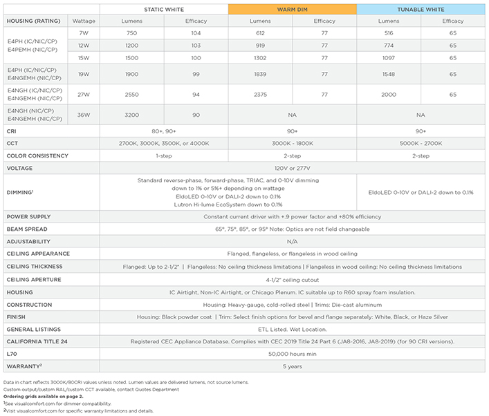 - 4" Pro Series Fixed 85° beam, 3000K, 80CRI, 19W