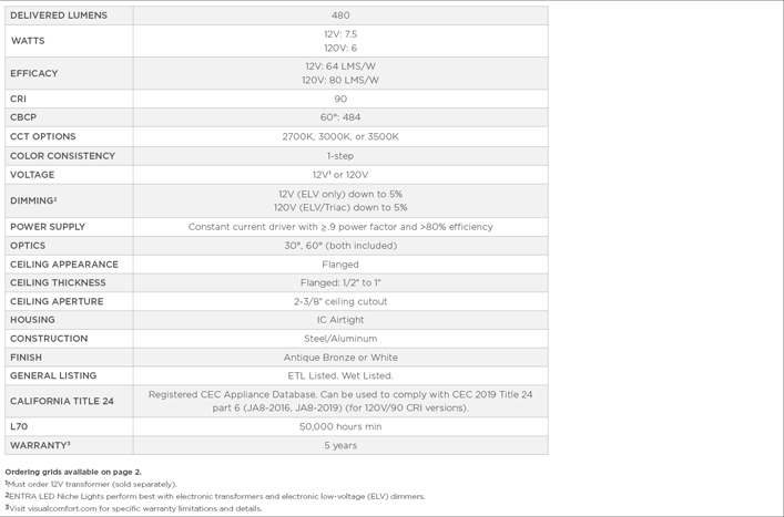 Entra 2" LED Fixed Niche Lights bring versatile and easy-to-install accent lighting to interior and exterior spaces. Available in both 12V and 120V versions, these units offer multiple color temperatures, and include both a 30º and 60º lens. Entra 2" LED Niche Lights are ideal for alcoves or built-in shelving, drawing attention to architectural details and improving overall illumination.