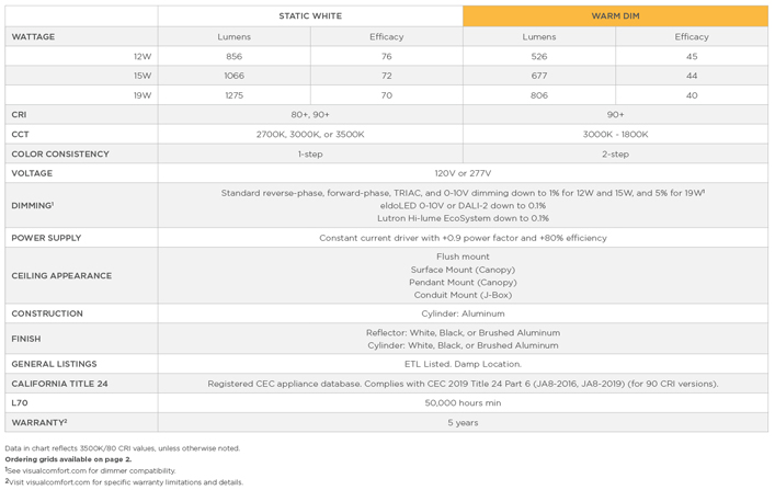 The ENTRA 3" Wall Wash Cylinder provides a cost-effective option with a modern aesthetic for residential, hospitality and commercial applications. ENTRA 3" Wall Wash Cylinders are a great solution for illumination in exposed ceiling applications. Mounting options include Flush Mount, Surface Mount, Pendant Mount and Conduit Mount. LED is recessed in the cylinder minimizing glare with Warm Dimming and Static White options. Available in Black, Brushed Aluminum and White (field paintable)Optimized Wall Wash beam distribution 1-step standard color binning Standard phase and 0-10V dimming down to 1%