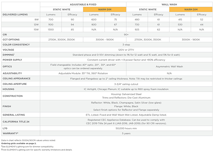 2700K, 3000K, 3500K, Warm Dim 3000K-1800K