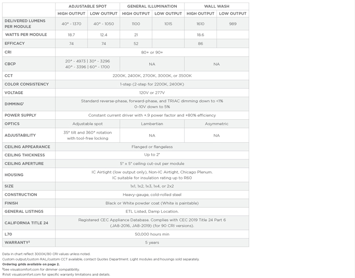 ELEMENT Multiples offers three interchangeable LED light modules: general illumination, wall wash, and adjustable spot. Light modules are sold separately to allow the ultimate in flexibility and customization options. The adjustable spot features a unique patent-pending LED dome assembly enabling remarkable tool-free adjustment and locking while maintaining full center beam candle power at all tilt & rotation angles. Although open, its thoughtful design boasts an uncommonly attractive, even sleek look below the ceiling. Available in 1x1, 1x2, 1x3, 1x4 and 2x2 configurations.